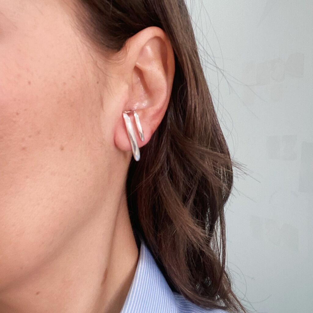 Detalhes: Brinco de prata lisa de encaixe com linhas retas
